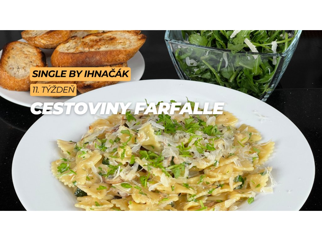 14. Servírujeme posypané nastrúhaným parmezánom so šalátom z rukoly a opečenými bagetkami.