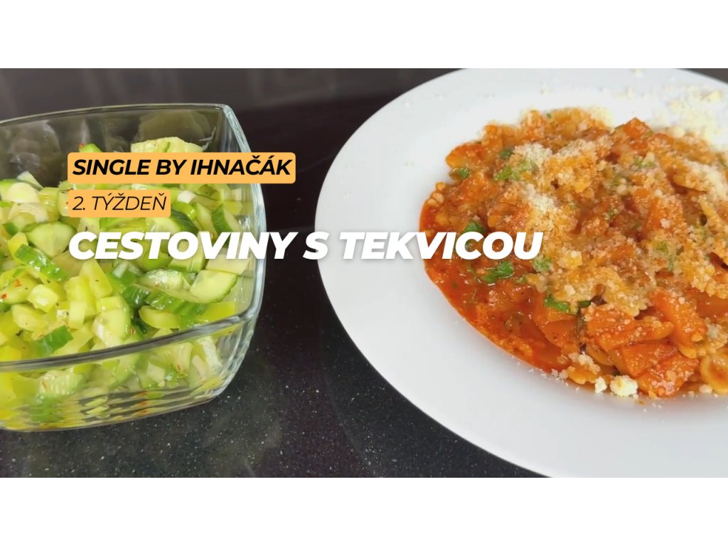 Cestoviny s tekvicou, cibuľkou a uhorkovým šalátom (7. deň)