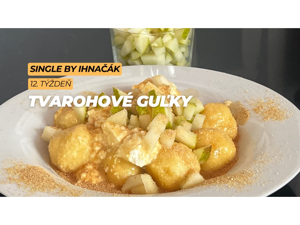 8. Servírujeme: Guľky si dáme na tanier, prelejeme omáčkou s tvarohom. Navrch dáme hrušky a opečenú strúhanku. Zvyšok hrušky si dáme ako prílohu.
